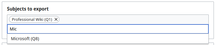 At the top of the export page, select the entities you wish to export. You can either select a single entity or multiple entities. You can search for entities to include in the export by entering their label or ID in the search box.